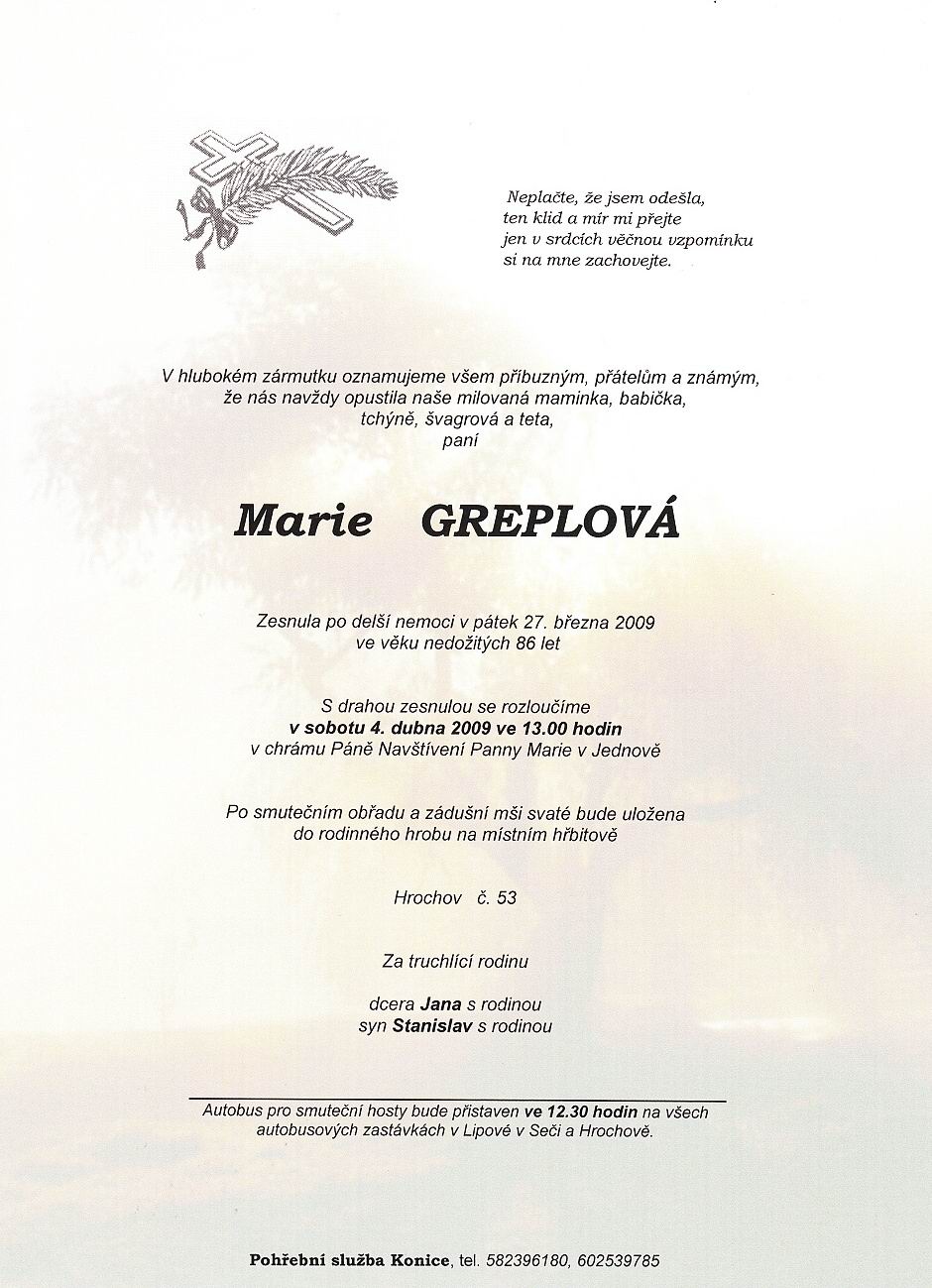 | Marie Greplová | 1926 | Hrochov 53 | 27.03.2009 | parte |